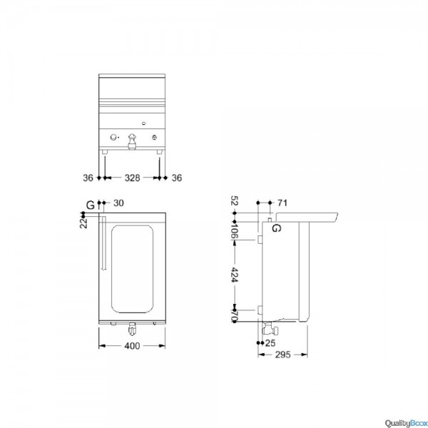 La friteuse possède une cuve pressée de 8 litres de capacité avec une dimension de 24x42cm, des thermostats de réglage et de sécurité et de robinets de vidage huile, avec panier et un couvercle et bouche de vidage.